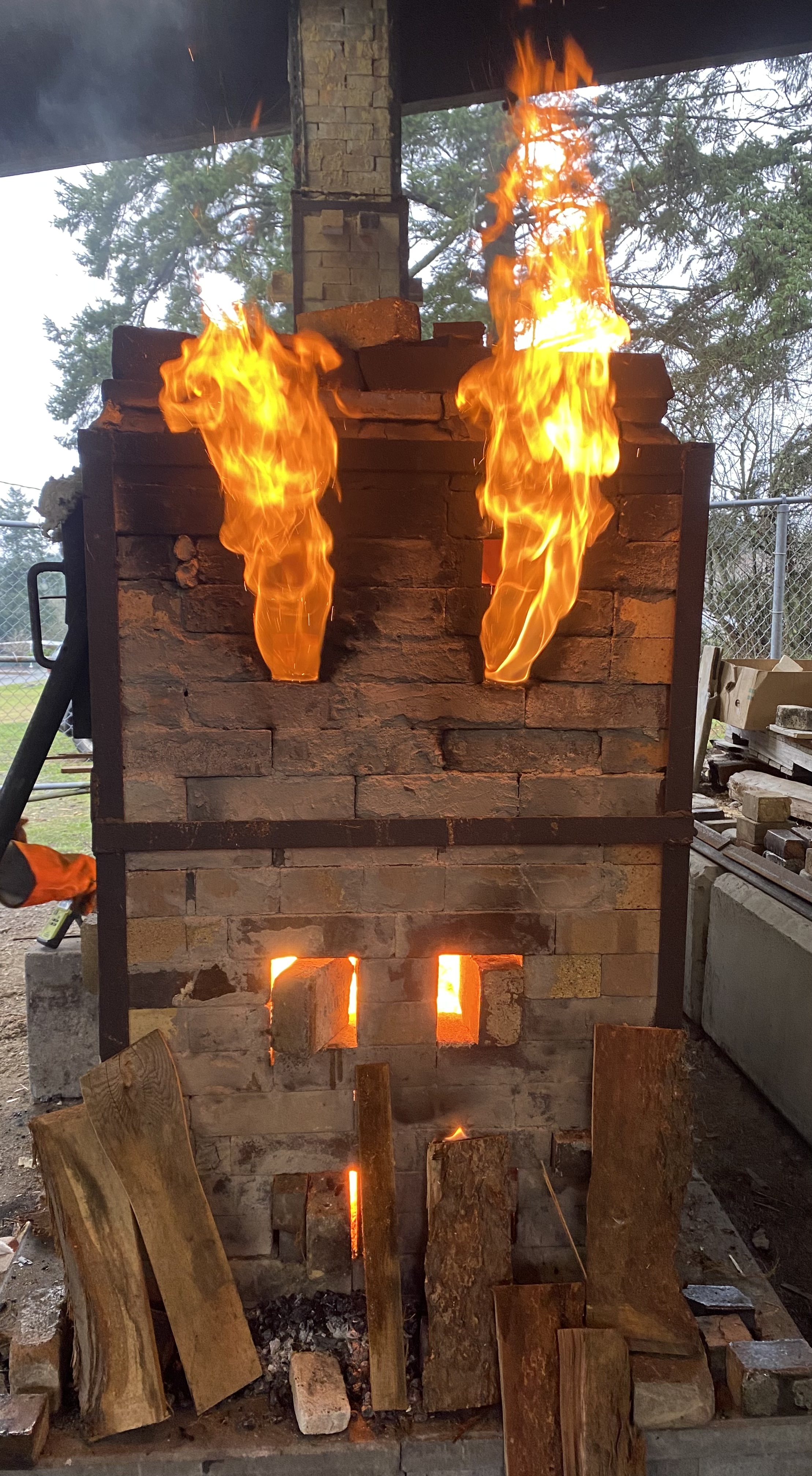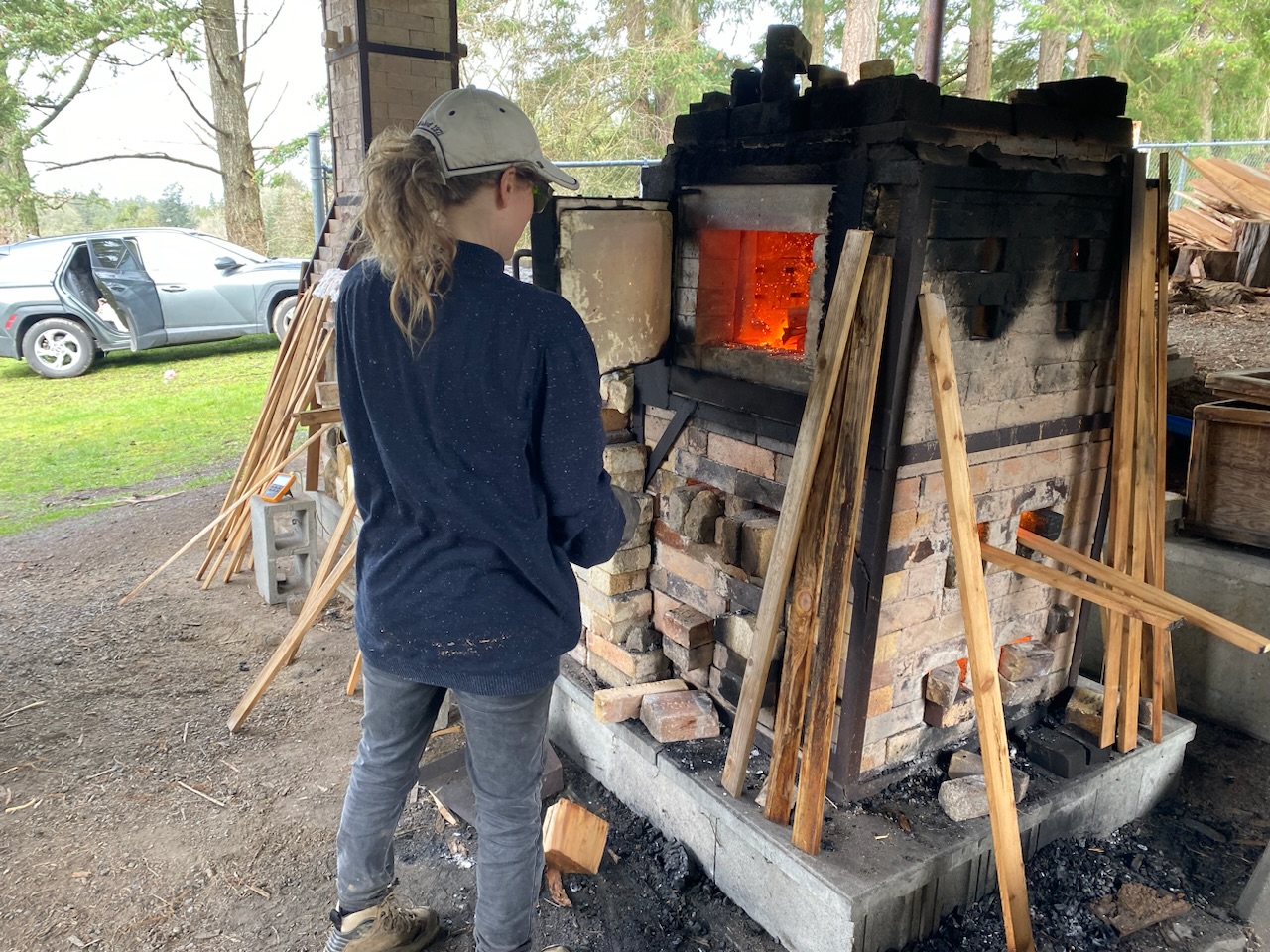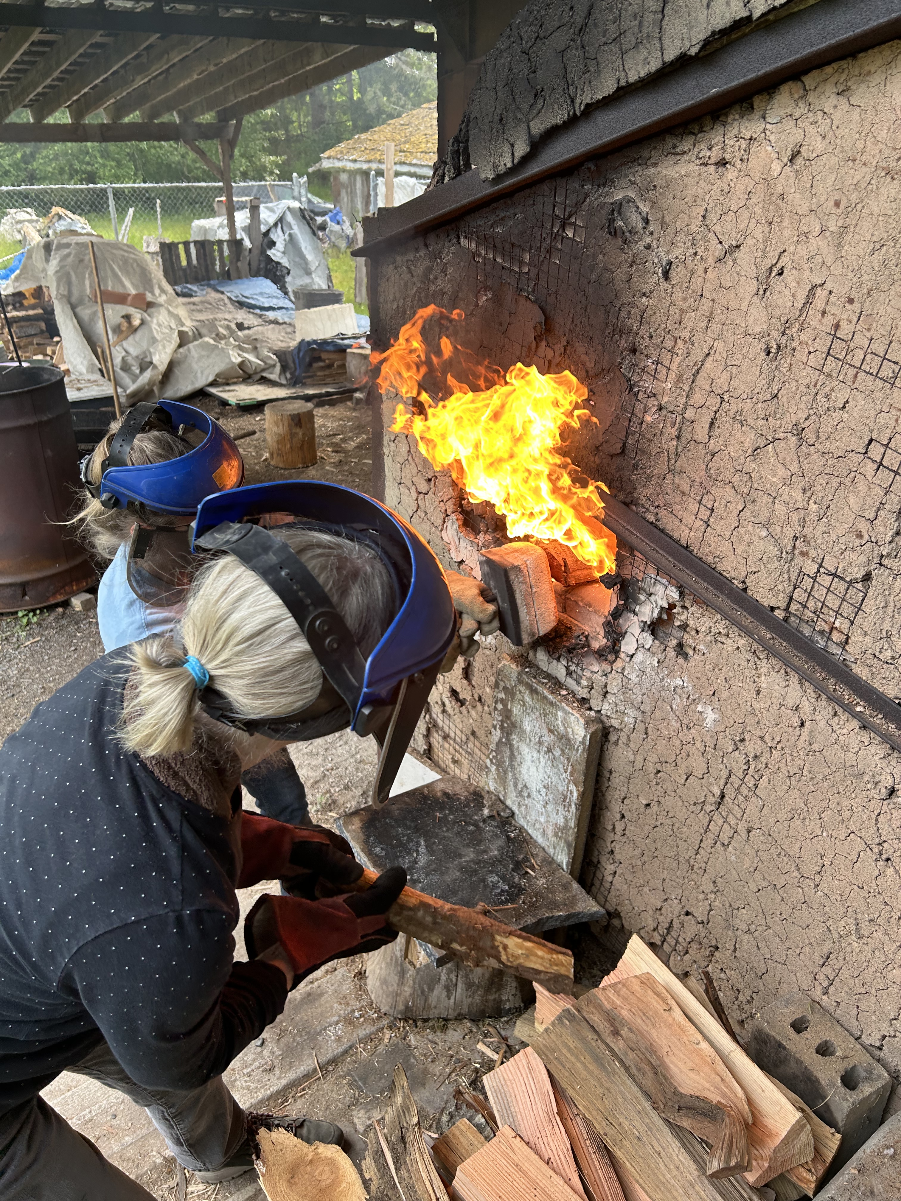 Tending to a large kiln together