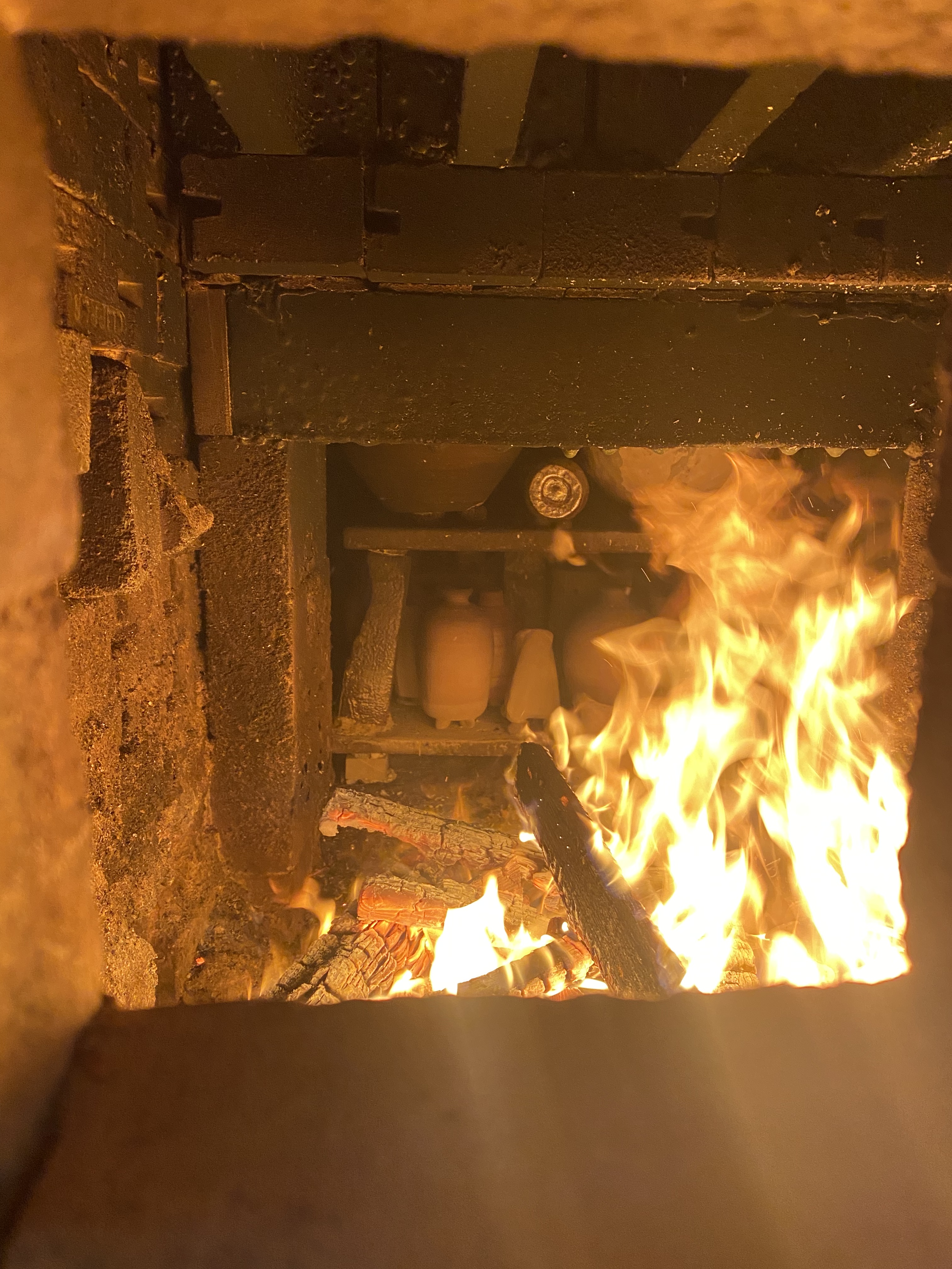 Reduction and Ash Effects: As the wood burns, it produces an ash that contributes to the glazing effects on the pottery. Different types of wood can create varied effects, influencing the colour and texture of the surfaces. The reduction atmosphere created by burning wood can also enhance the depth of colours and create unique markings.